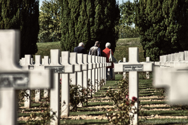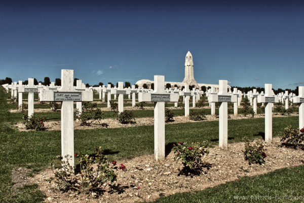 Alle paar Jahre, vorzugsweise zu runden Gedenktagen, laufen Staatsmänner mit ernster versteinerter Miene, gekleidet in dunklen Anzügen und weißen Hemden, an den weißen Kreuzen in Douaumont entlang. Vor der Grabstätte werden großartige Reden gehalten, die mit Worten wie Hölle und Krieg beginnen und mit Freundschaft und Versöhnung enden. Am 22. September 1984 ging das Bild des händchenhaltenden Präsidenten François Mitterrand mit dem Bundeskanzler Helmut Kohl um die Welt.