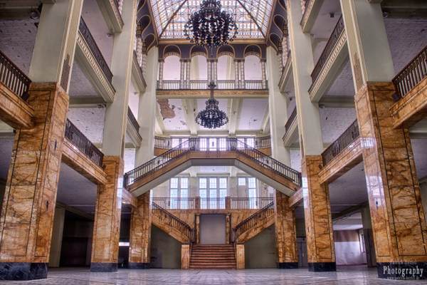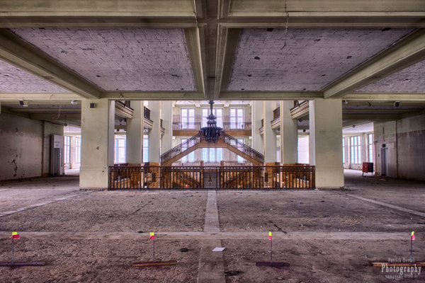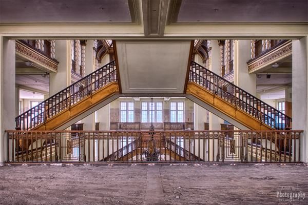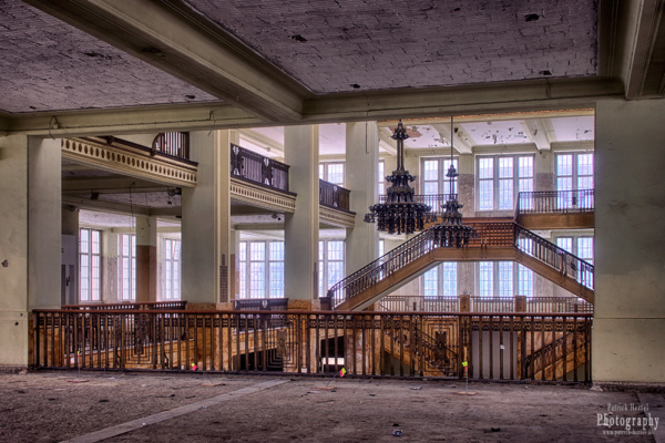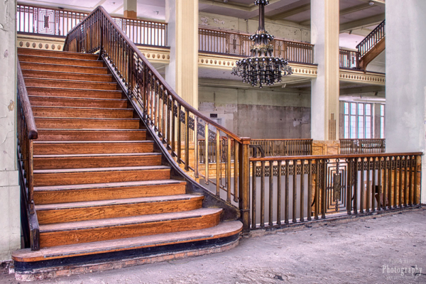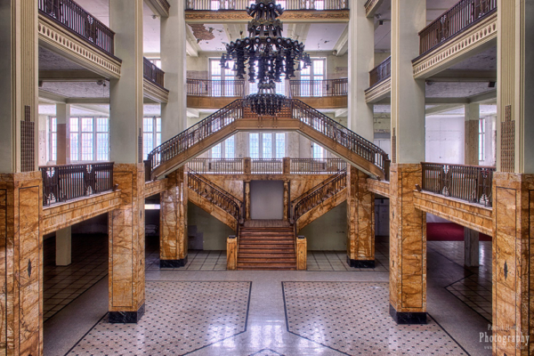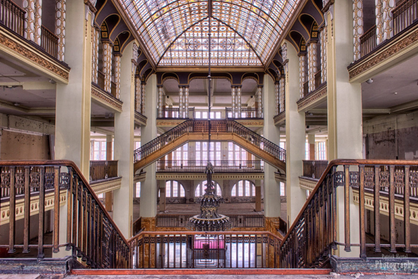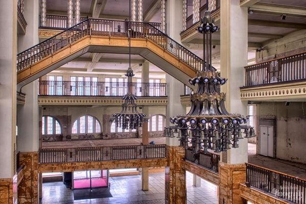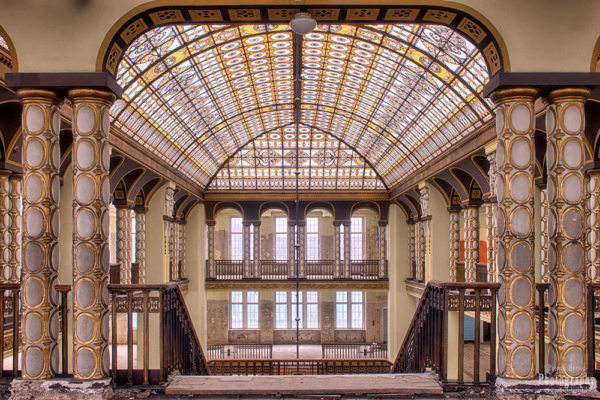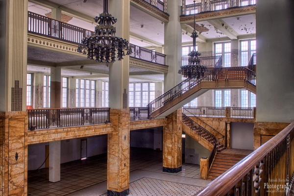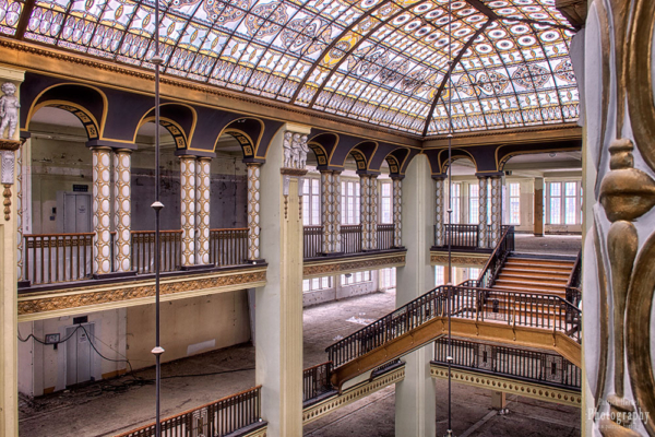 Betritt man heute das noch immer leer stehende Gebäude, kommt man bei dem imposanten Anblick schnell ins Staunen. Im Innenraum fallen neben dem Granit Fußboden sofort die freitragenden Treppen ins Auge. Die tragenden Stützen des Gebäudes sind mit vielen kleinen Jugendstilornamenten geschmückt und lässt man seinen Blick nach oben schweifen, ist ein riesiges Glaskuppeldach mit von der Decke herab hängenden Kronleuchtern zu entdecken.