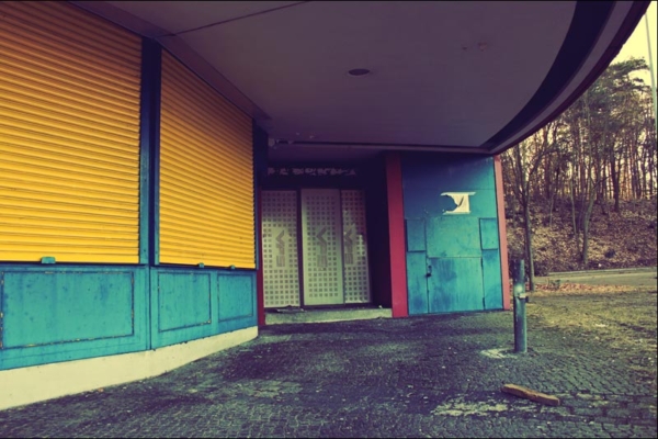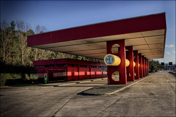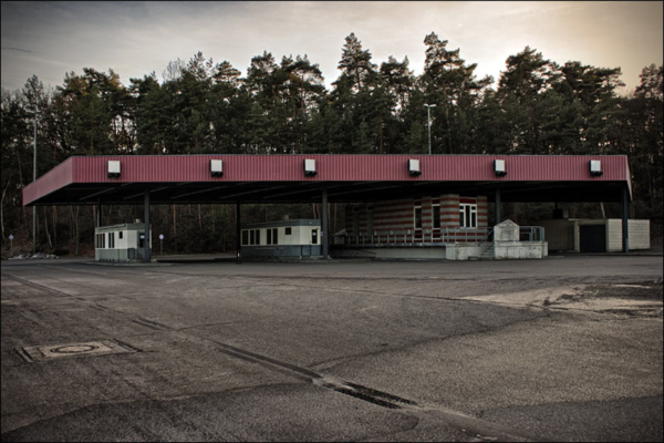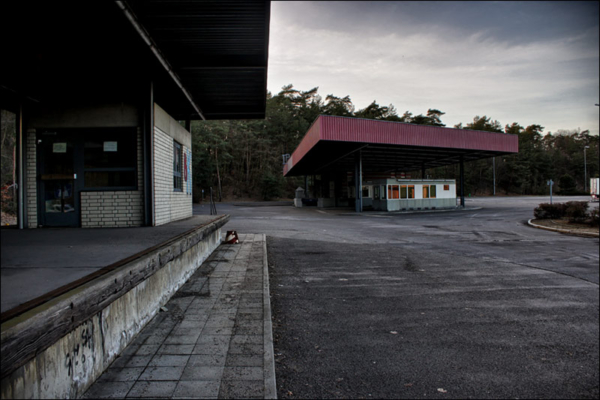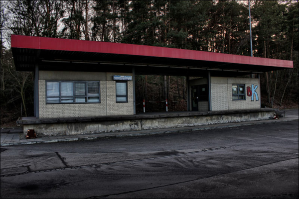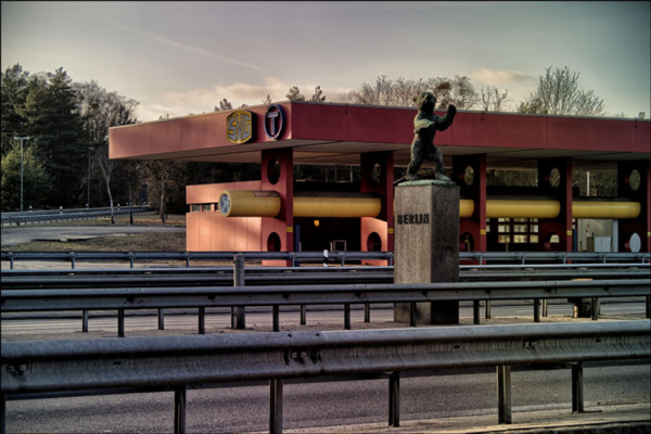Die knallrote Pop-Art Raststätte ist wohl das markanteste Gebäude am Grenzübergang. Entworfen von Architekt Rainer G. Rümmler, der auch viele der Berliner U-Bahnhöfe zur damaligen Zeit baute, wurde sie jedoch kaum genutzt. Schon neun Monate nach der Eröffnung wurde sie wegen Publikumsmangel wieder geschlossen. Sie war schlicht überflüssig an dieser Stelle, wer in die BRD wollte hatte meist gerade erst gefrühstückt, wer aus der BRD kam und die Durchfahrt durchs DDR Niemandsland geschafft hatte, wollte einfach nur schnell nach Hause.
