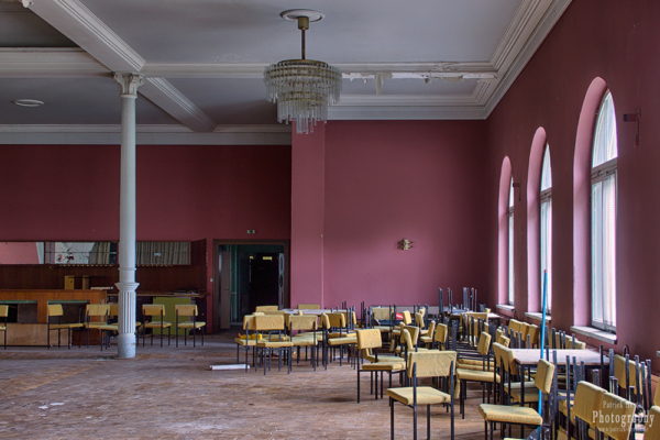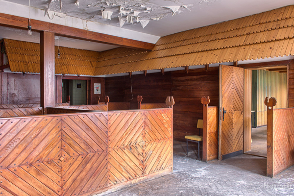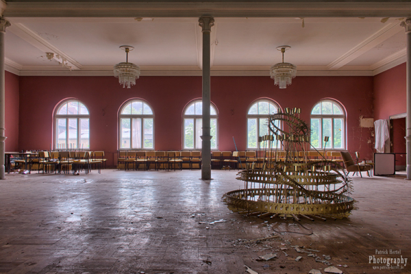 Die goldenen Zeiten dieses ehemaligen Tanzsaales sind wie bei so vielen anderen auch schon lange vorbei. Bei einem sommerlichen Regenguss kam er uns jedoch sehr gelegen und bot uns nicht nur ein trockenes Dach über dem Kopf sondern auch ein paar schöne Motive. Wie lange der Tanzsaal schon nicht mehr genutzt wird ließ sich leider nicht recherchieren. Ein gefundenes Quartalsbuch aus dem Jahr 1982 wird jedoch nicht seine Schließung markieren.