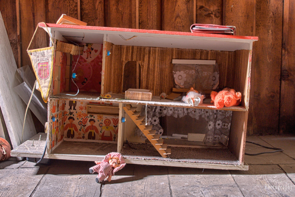 Neben einem sehr großen Tanzsaal mit wunderschönen Kronleuchtern gab es auch noch einen etwas kleinere Raum zum Feiern und einen Biergarten. In den oberen Stockwerken waren vereinzelte Zimmer für Übernachtungen eingerichtet und auch der Blick auf den Dachboden hat mal wieder gelohnt, denn dort fanden wir ein kleines aber gut erhaltenes Puppenhaus aus DDR Zeiten.
