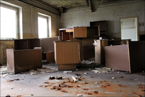 Wow, soviel Chaos auf einem Haufen sieht man selten. Das Gelände und die Hallen sind einfach nur verwildert und leer, jedoch sind die umliegenden Bürogebäude stark von Vandalismus und Zerstörung betroffen. Zu entdecken gibt es wenig, hier und da sind ein paar interessante Kleinigkeiten, vom eigentlichen Betrieb und der Produktion ist nicht mehr viel zu sehen.