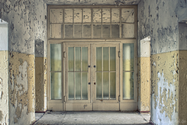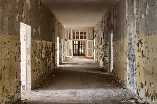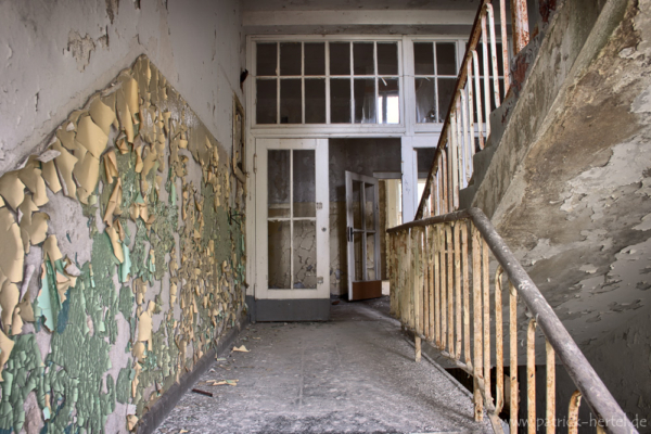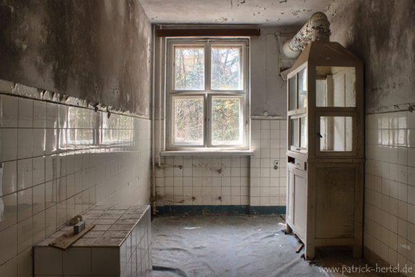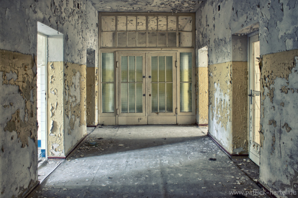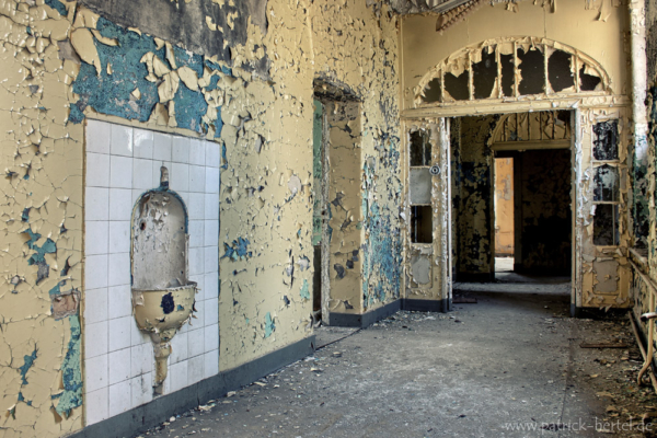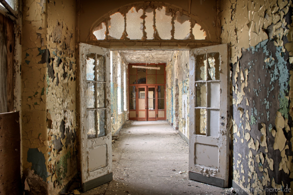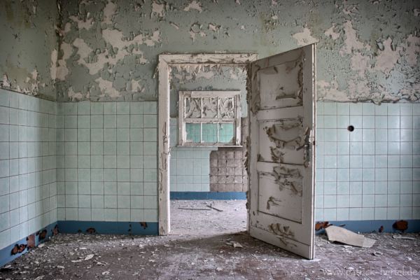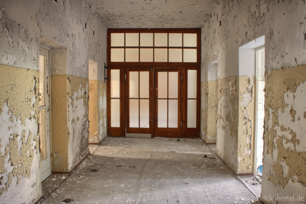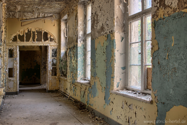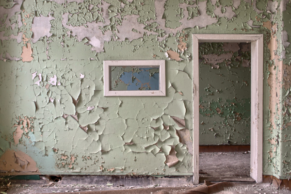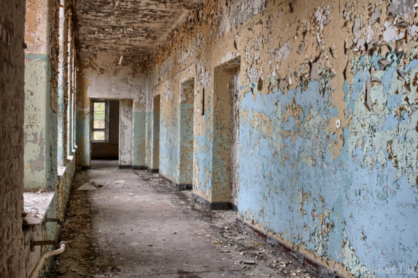 Dieses kleine Lazarett hatte ich lange Zeit überhaupt nicht auf meiner Liste. Trotz mehrmaliger Besuche in der Gegend ist es mir nie aufgefallen, aber es hat mich begeistert wie schon lange kein anderer Ort. Das lag nicht daran, dass es voll von alten Einrichtungsgegenständen oder Mobiliar war, sondern an einem wunderschönen natürlichem Verfall, ganz ohne Vandalismus oder Schmierereien, dafür aber mit zahlreichen abblätternden bunten Farben an den Wänden und einigen Kleinigkeiten die an die ehemalige Nutzung erinnerten.