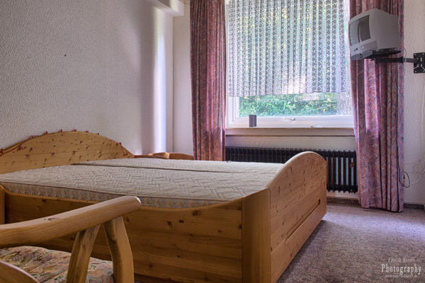 Trotz des jahrelangen Leerstandes und dem Wasserschaden ist das Hotel noch in einem erstaunlich guten Zustand, sieht man von der stehenden feuchten Luft einmal ab. Damit kann aber der beliebte Luftkurort noch punkten. Die Zahl der Zimmer war recht überschaubar und irgendwie wirkte alles bunt durcheinander gewürfelt. So konnten mich die meisten Motive auch nicht wirklich begeistern und es ging schnell weiter zum nächsten Spot.