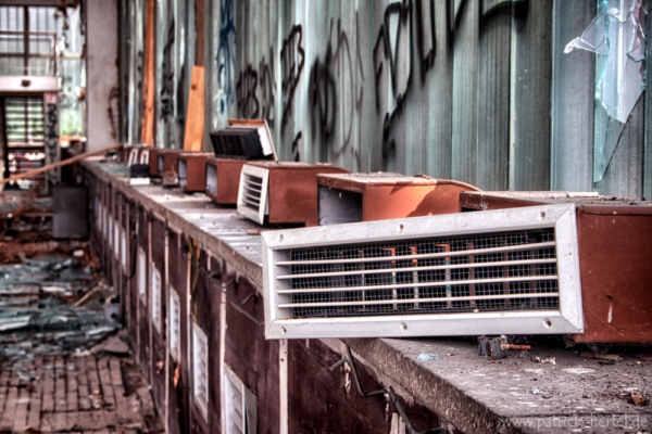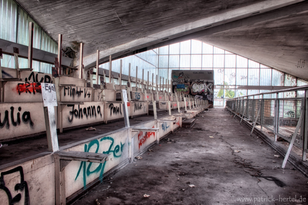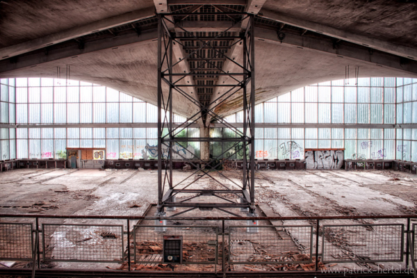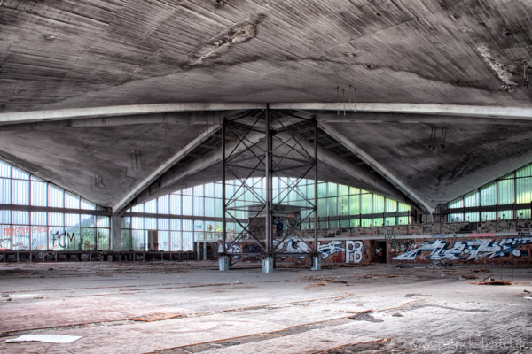 Filigran, leicht, schwerelos, so bezeichnet manch ein Kritiker die Bauweise der Hyparschale und vor allem die sich selbsttragende Stahlbetondecke. Die Last der vier Dachschalen wird über die Schrägstützen zum Erdboden hin geleitet. So brauchen die Außenflächen keine zusätzlichen Stützen und bestehen weitestgehend aus Glas. Die Hyparschale ist eine ehemalige 1969 nach Plänen des Bauingeneurs Ulrich Müther errichtete Mehrzweckhalle. Seit 1990 steht das Gebäude unter Denkmalschutz. Mittlerweile besteht ein erheblicher Sanierungsbedarf des Daches, Gelder werden aber von der Stadt bereit gehalten, falls sich ein entsprechender Investor mit entsprechendem Nutzungskonzept findet.