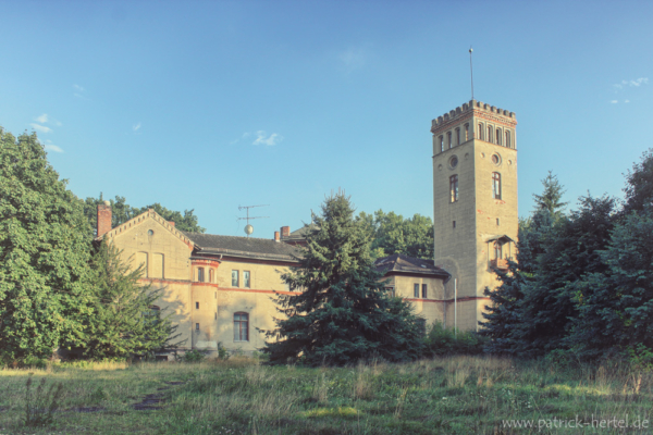 Diese ließ sich ein prachtvolles Jagdschloss in der waldreichen Umgebung erbauen und den Park von einem Gartenarchitekt gestalten. So wurde das Schloss im Sommer zu einem kleinen Geheimtipp. Sonderzüge brachten Reisende aus der nahen Großstadt zum Schloss, die sich am Wald und einem eingerichteten Wildpark erfreuen wollten. Heute steht das denkmalgeschützte Gebäude leer. Das innere des Turmes ist bereits komplett eingestürzt, nur das noch einigermaßen dichte Dach kann das Gebäude bisher schützen.