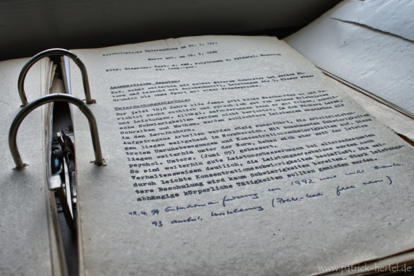 Lässt man sich das in oben genannten Absatz geschriebene auf der Zunge zergehen ist es eine schöne Ironie inmitten dieses riesigen leergeräumten Komplexes ein Poster zum Film „Der Test des Piloten Pirx“, ein Buch „Grundlagen der ärztlichen Begutachtung“ und ein psychologisches Gutachten eines jungen Patienten zu finden. Wie in so vielen riesigen entkernten Komplexen mussten auch hier die Kleinigkeiten erst einmal gefunden werden, dennoch war es eine schöne Erkundung inclusive fantastischen Ausblicks vom Dach.