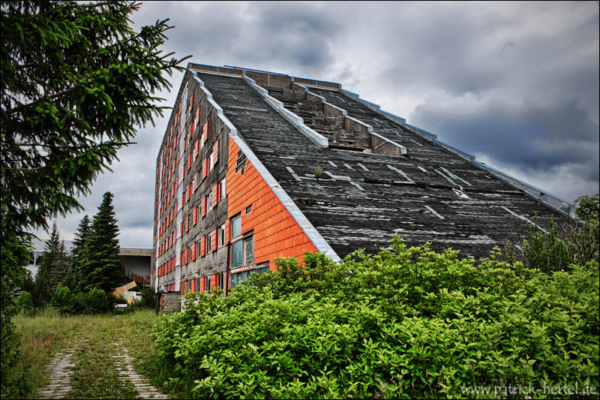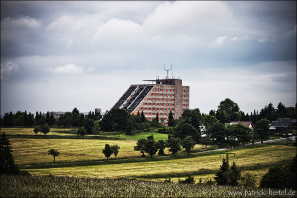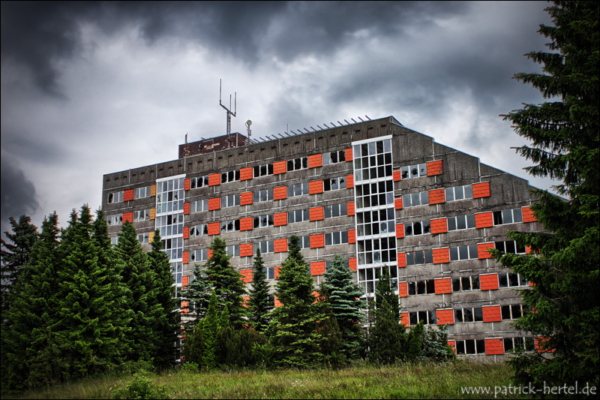Das NVA Erholungsheim „Auf dem Sonnenberg“ in Frauenwald ist kurz gesagt ein einfacher riesiger Betonklotz. Im Volksmund wird er auch gerne Sprungschanzenhaus genannt. Nach dreijähriger Bauphase wurde er 1976 für die „oberen Zehntausend“ eröffnet. In den drei Jahren diente er auch der Tarnung eines in der Nähe gelegenen Bunkerbaus, wo offizielle Materialtransporte zum Ferienheim hin umgeleitet wurden. Mit rund 440 Zimmern war es neben dem „Kraft durch Freude“ Seebad Prora das zweitgrößte Erholungsheim der DDR.