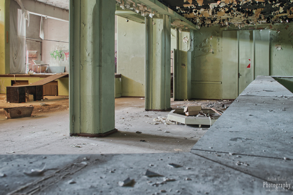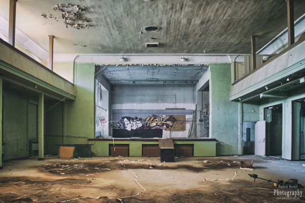 Der Saal gehört mit seiner doch recht schlichten Bauart sicherlich nicht zu den interessantesten aber für ein paar Fotos hat es dennoch gereicht. Einige kleine mehr oder weniger interessante Details waren noch zu finden, das war es dann aber auch schon. Eine Zukunft wird es für das Kulturhaus sicherlich nicht mehr geben, der Standort ist für ein so riesiges Gebäude einfach nicht mehr geeignet um noch ausreichend Besucher anlocken zu können. So wird er wohl, wenn einmal Geld vorhanden ist abgerissen werden.