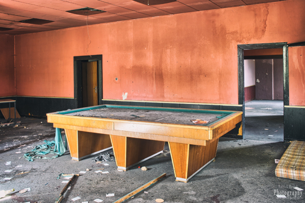 Der Pfefferminzgrüne Ballsaal ist ein vermutlich zu DDR Zeiten errichtetes Kulturhaus mit großem Saal für Veranstaltungen. Das gesamte Gebäude ist in einem bereits sehr schlechten Zustand, die Decken und Böden sind feucht und verschimmelt und da wo die Wände nicht mit Kindergraffitis beschmiert sind wachsen bereits unzählige Pilzkulturen. Eine Zeitlang muss eine Discothek im Gebäude gewesen sein, doch an den Auftritt von Frank Zander werden sich wohl nur noch wenige Besucher nach nun über 20 Jahren erinnern können.