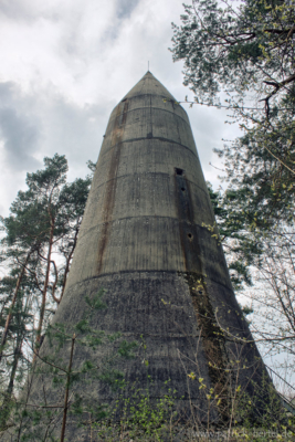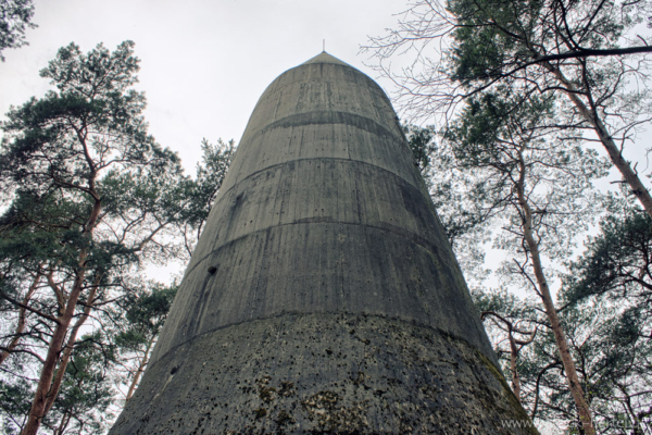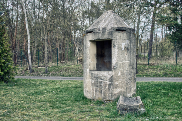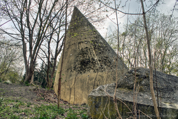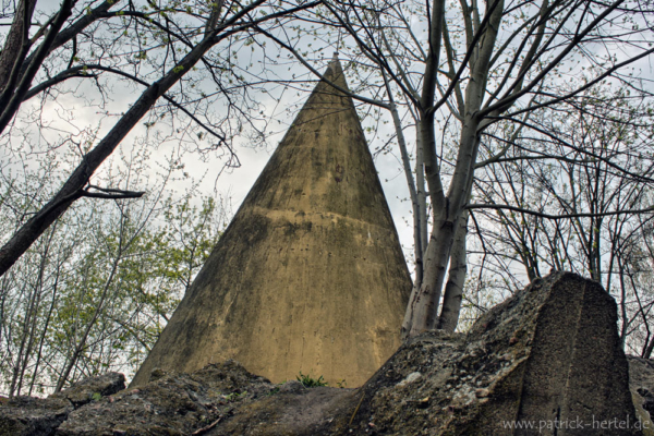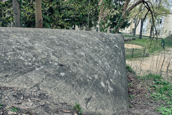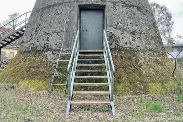 Als 1937 in der verbotenen Stadt die Arbeiten für die unterirdischen Anlagen Maybach I und Maybach II begannen errichtete man oberirdisch gleichzeitig 19 Luftschutzbunker vom Typ Hochbunker der Bauart Winkel Typ 2. Im Volksmund bezeichnete man die Spitzbunker auch gern als Betonzigarre oder Zuckerhut. Entworfen wurden sie vom Konstrukteur Leo Winkel, der 16 verschiedene Bauarten mit zum Teil äußerlich sehr unterschiedlichem Aussehen konstruierte. Die hier gezeigten Spitzbunker boten für 350 Personen Schutz, aber nur wer auch eine „Eintrittskarte“ vorweisen konnte wurde Zutritt gewährt, denn die Sitzplätze waren nummeriert.