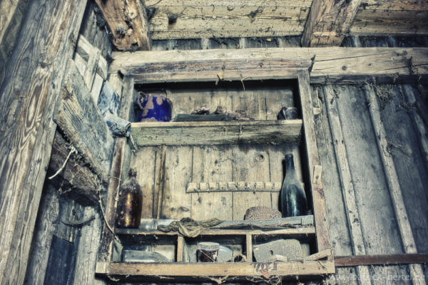 Die erste Station auf einer kleinen September Reise führte mich zur Tiny Farm. Sie stand nicht auf meiner Liste, war ein reiner Zufallsfund. Dem Zeitplan schon weit hinterher, fuhr ich erst einmal vorbei, denn mein eigentliches Ziel war nur noch ein paar Kilometer entfernt. Dennoch entschied ich mich noch einmal um und fuhr kurz ran. Das Wohnhaus war leider komplett verschlossen. Durch die Fenster waren allerdings in Spinnengewebe gehüllte Holzmöbel zu sehen.
