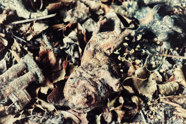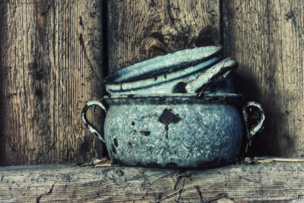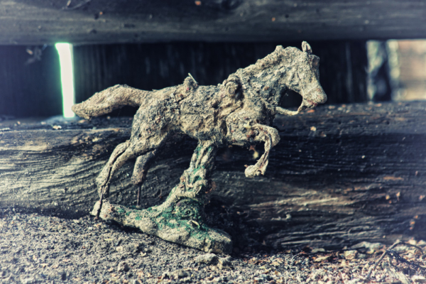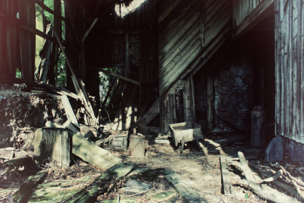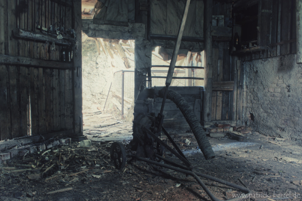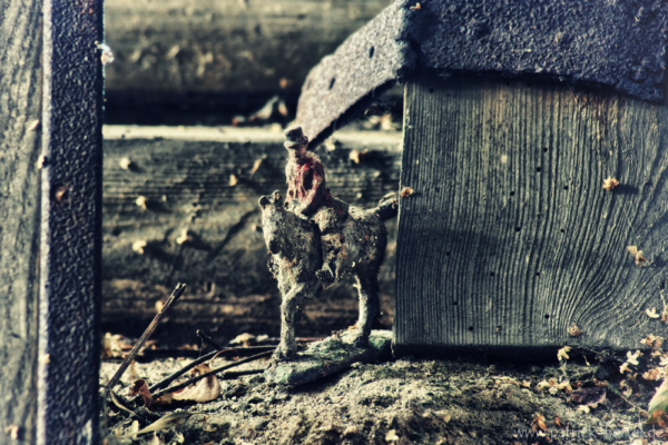 Im Hinterhof gab es aber doch noch einige wenige Motive. Es war wohl der letzte Abenteuerspielplatz der Kinder des Hauses gewesen. Einige Spielfiguren standen in der Scheune herum, andere lagen im Laub auf dem Boden. Der hintere Eingang des Hauses war schon komplett eingestürzt. Aufgrund der Nähe zum nächsten Ziel und dem fehlenden Ortsschild, verschob ich die genauere Orts Speicherung auf später und fuhr nach einigen Bildern weiter. Ein paar Tage und Kilometer später hab ich das Haus leider nicht wieder finden können. Bleibt also nur zu hoffen, dass mich mein Weg noch einmal zu ihm führt.