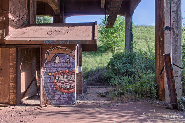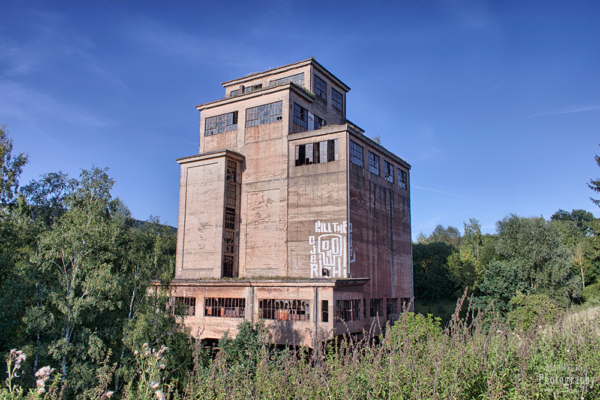 Dieser ehemalige Verladebunker ist mit seiner Höhe von über 30 Metern schon aus sehr weiter Entfernung bei der Anfahrt zu sehen gewesen. Parken musste man jedoch etwas entfernt um ihn über den nahegelegenen Acker zu erreichen. Er gehörte zu einem ehemaligen Bergwerk, in dem von 1937 bis 1962 Erz gefördert wurde. Obwohl die Erzvorkommen hier schon lange bekannt und bereits seit dem 18. Jahrhundert gefördert wurden, erlebte die Grube ihre Blütezeit erst mit der Machtübernahme der Nationalsozialisten. Diese forschten damals gezielt nach Bodenschätzen um sich unabhängiger vom Ausland zu machen. Das damalige Stollensystem war mehrere Kilometer lang und das gewonnene Erz wurde hier über den Hauptschacht mit elektrischen Loks abtransportiert.