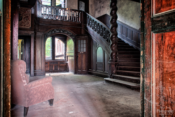 Ein großzügig gestaltetes Eingangsportal lädt in eine ebenso prachtvolle Eingangshalle mit großem Treppenaufgang und riesigem Kamin ein. Die handgeschnitzte Holzvertäfelung die ihn einmal umrahmte wurde zur Sicherheit ausgelagert, ebenso wie viele andere Zubehörstücke und Buntglasfenster. Eine Wohnfläche von 600 m² bot nicht nur genug Platz für eine große Familie sondern auch für zahlreiche Gäste, die auch gern durch die zugehörige rund 16.000 qm große Parkanlage geführt wurden.