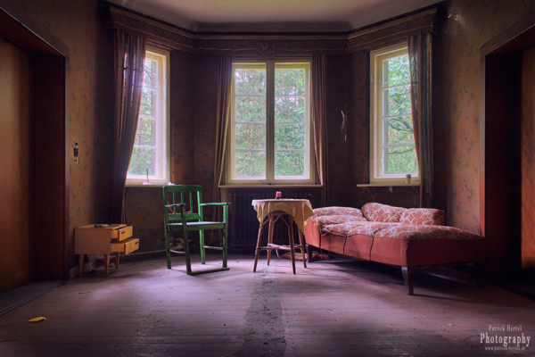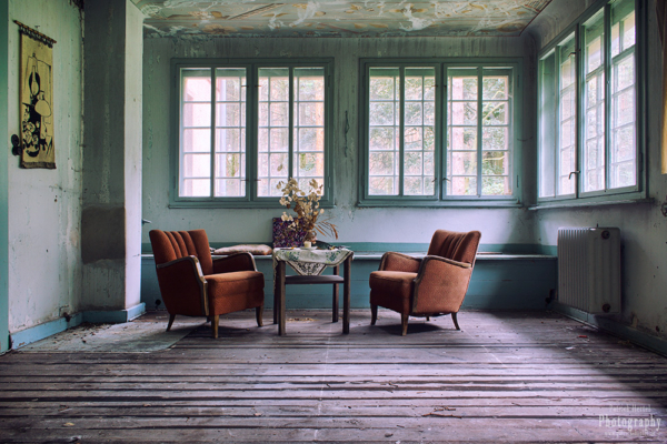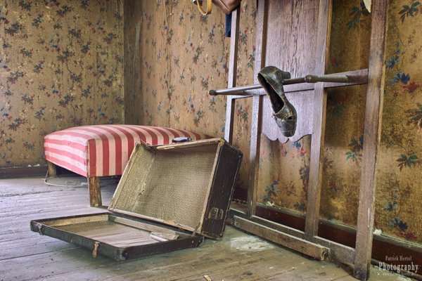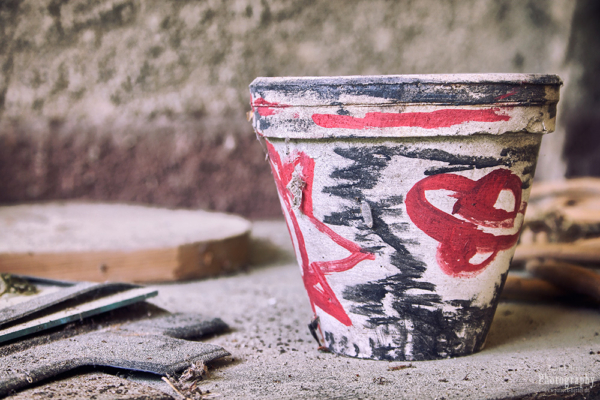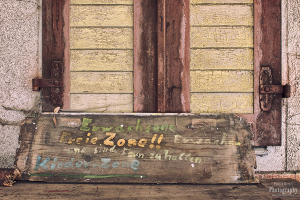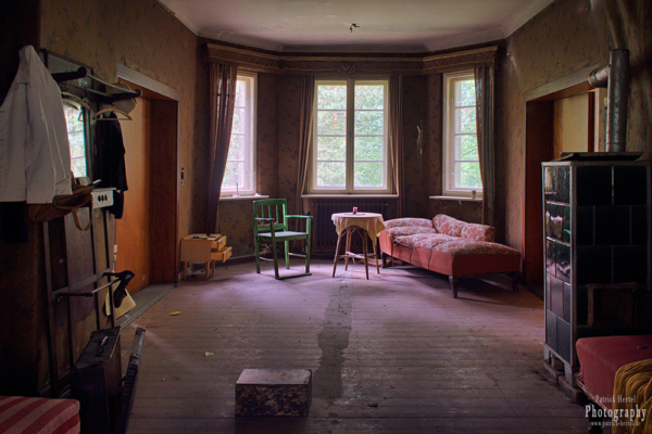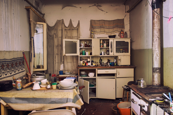 Zeitweise hat das Haus wohl noch für jemanden als Unterschlupf gedient, denn bei meinem zweiten Besuch waren ein paar Lebensmittel in der Küche hinzugekommen und ein paar Kleidungsstücke hingen über den Stühlen. Mittlerweile haben leider auch hier sich die Vandalen eingefunden. Die Wände der beiden Zimmer wurden mit Kinder Graffitis beschmiert und einiges ist verschwunden.