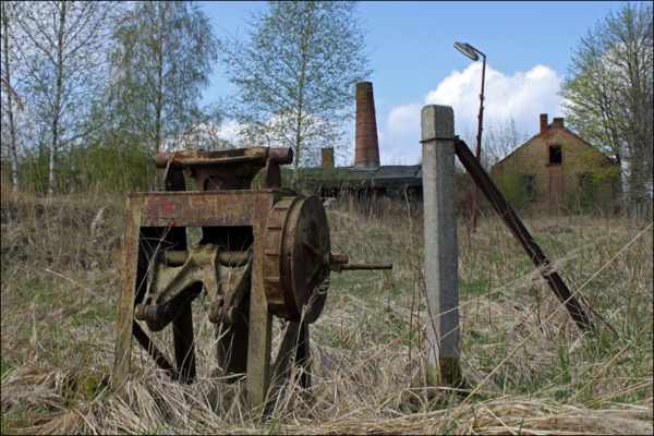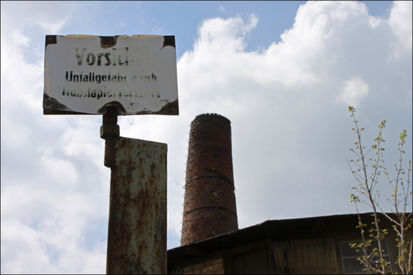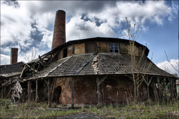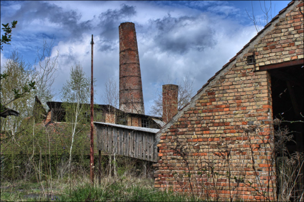 Die Ziegelei R. liegt am Ortsrand eines kleinen 600 Einwohner fassenden Dorfes. Schon von weiten konnte man den Schornstein des Ringofens der Ziegelei sehen, trotzdem bin ich erst mal dran vorbei gefahren. Das einzige Gebäude vom Gelände was noch nicht großartig vom Verfall betroffen ist war der Brennofen. Er war noch begehbar und es lagen auch vereinzelt Mauerziegel herum.