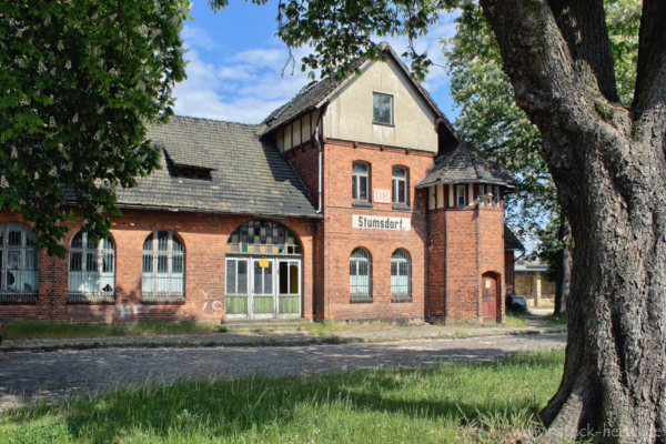 Der Bahnhof der Saftbahn war dann eben nur eine Markierung an der wir noch angehalten haben. Er war einmal der erste wenn auch kleine in dieser Region, den Namen Saftbahn erhielt er später im Volksmund durch den Zuckerrübensirup der über die Bahnstrecke transportiert wurde. So wurde das kleine Bahnhofsgebäude mit Diensträumen und -wohnungen, Wartesälen und Toilettenanlagen erweitert. Ein Wasserturm für die Dampflokomotiven und ein Tunnel um den zweiten Bahnsteig erreichen zu können wurden erbaut.