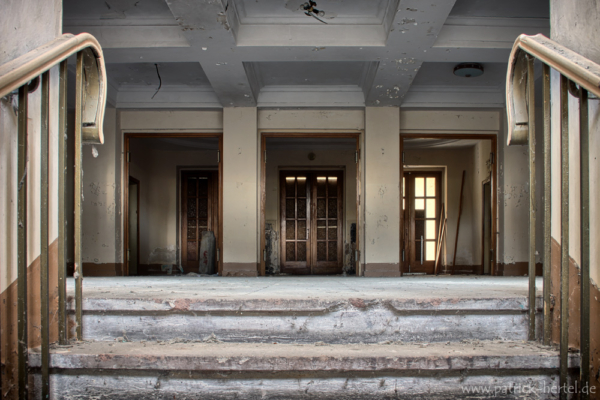 Sehr auffällig im Haus war die große Anzahl an Tresoren, hier gezeigt wird dabei aber nur ein kleiner Teil. Insgesamt war hier recht wenig zu finden, der riesige Haupteingang mit seinem Treppenaufgang war aber sehr beeindruckend.