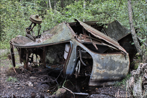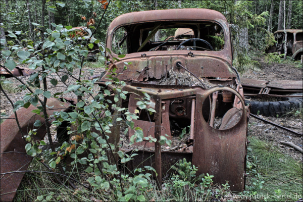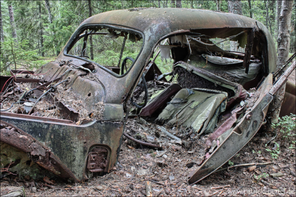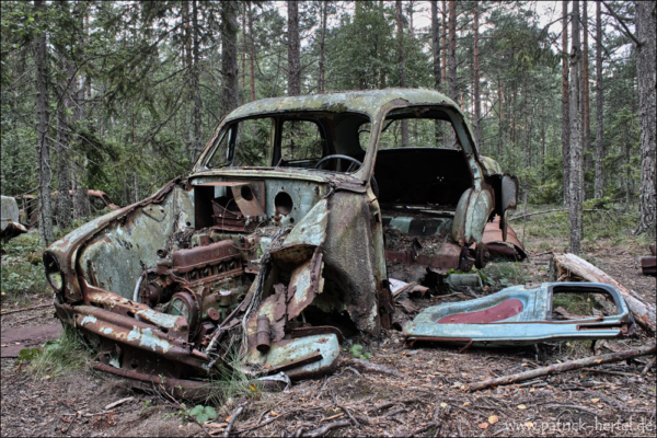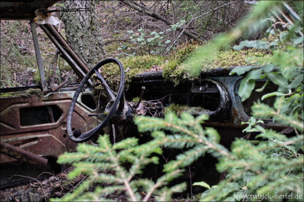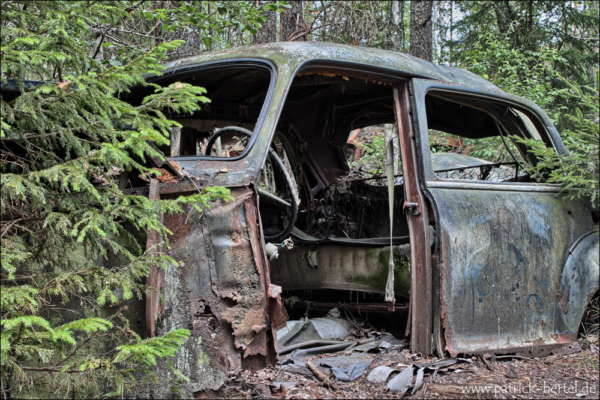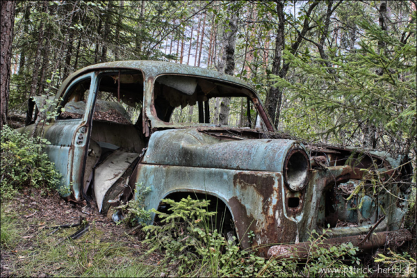 Tief im Wald versunken liegt er, der Heilige Gral unter Autoliebhabern. Einer der letzten großen europäischen Autofriedhöfe. Etwas mehr als 100 Autos aus den 30er bis 60er Jahren rosten hier vor sich hin und warten darauf bis der Boden sie verschlungen hat. Einen solchen Ort treffend zu beschreiben ist gar nicht so einfach. Mystisch, verwunschen, romantisch, trostlos, skurril, abenteuerlich – irgendwie passt da alles. Leonard Nimoy alias Mr. Spock hätte ihn wohl treffend mit “Faszinierend!” beschrieben.