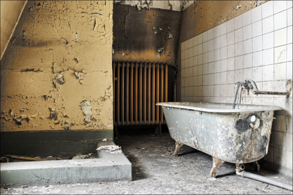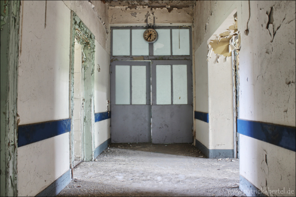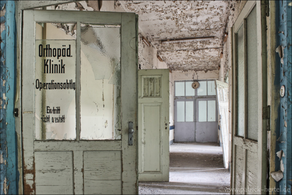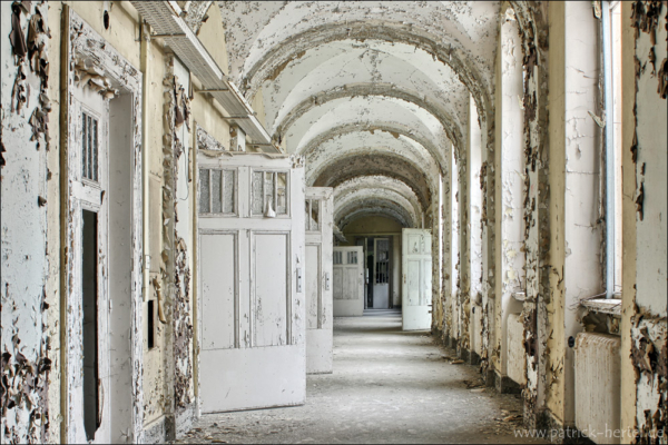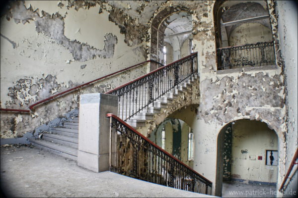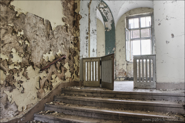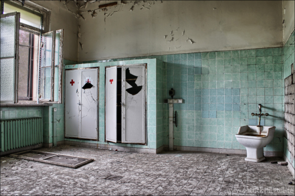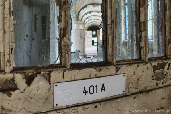 Bei aller feinstem regnerischen Aprilwetter hatte ich die Möglichkeit einige Stunden im Gebäude zu verbringen. Was besonders auffiel war die Mühe die man sich gemacht hatte alle Türen und Fenster bis in die oberen Etagen zu verschließen. Daher hält sich der Vandalismus vermutlich auch sehr in Grenzen, da der Wachschutz wohl auch sehr hinterher ist das Gebäude verschlossen zu halten. Im inneren ist eigentlich so gut wie alles an Einrichtung verschwunden. Trotzdem findet man bei genauerer Suche immer noch viele schöne Motive. Im Laufe der Jahre hatte das Krankenhaus immer wieder verschiedene Nutzungen, erbaut wurde es allerdings wie so viele andere Einrichtungen zur damaligen Zeit zur Heilung von Tuberkulose.